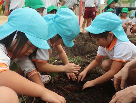 ふじ組さんが育てたお芋を掘りました! みんな夢中になって、お芋を掘り、「ここにもまだある!」「見てお⋯