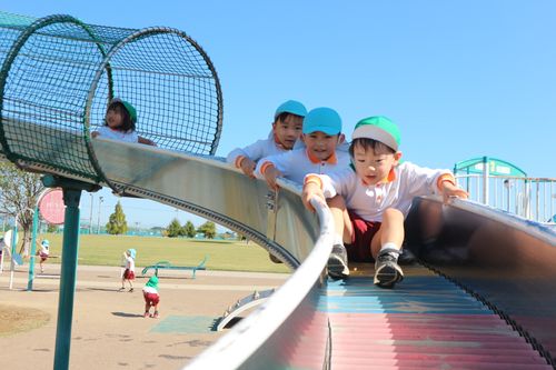 お友達と繰り返し滑り台を滑る姿が微笑ましかったです!公園で思い切り体を動かして遊んだ子ども達でした♪