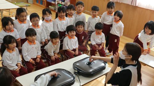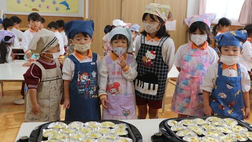 実際に、みんなで材料を入れたり混ぜたりしながら、生地作りからしました。「なんだかアイスみたいで美味しそう!」と目をキラキラさせていましたよ!